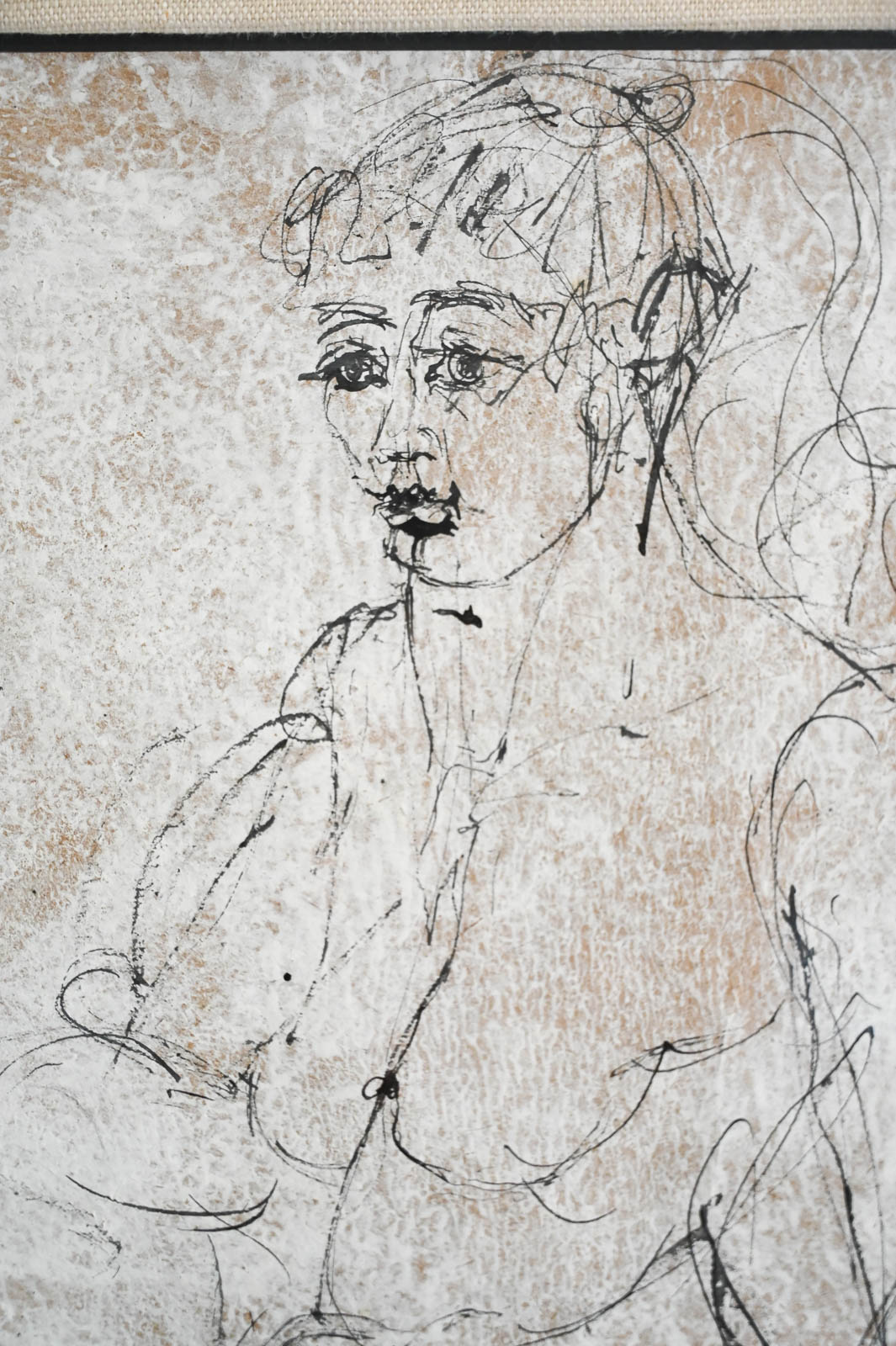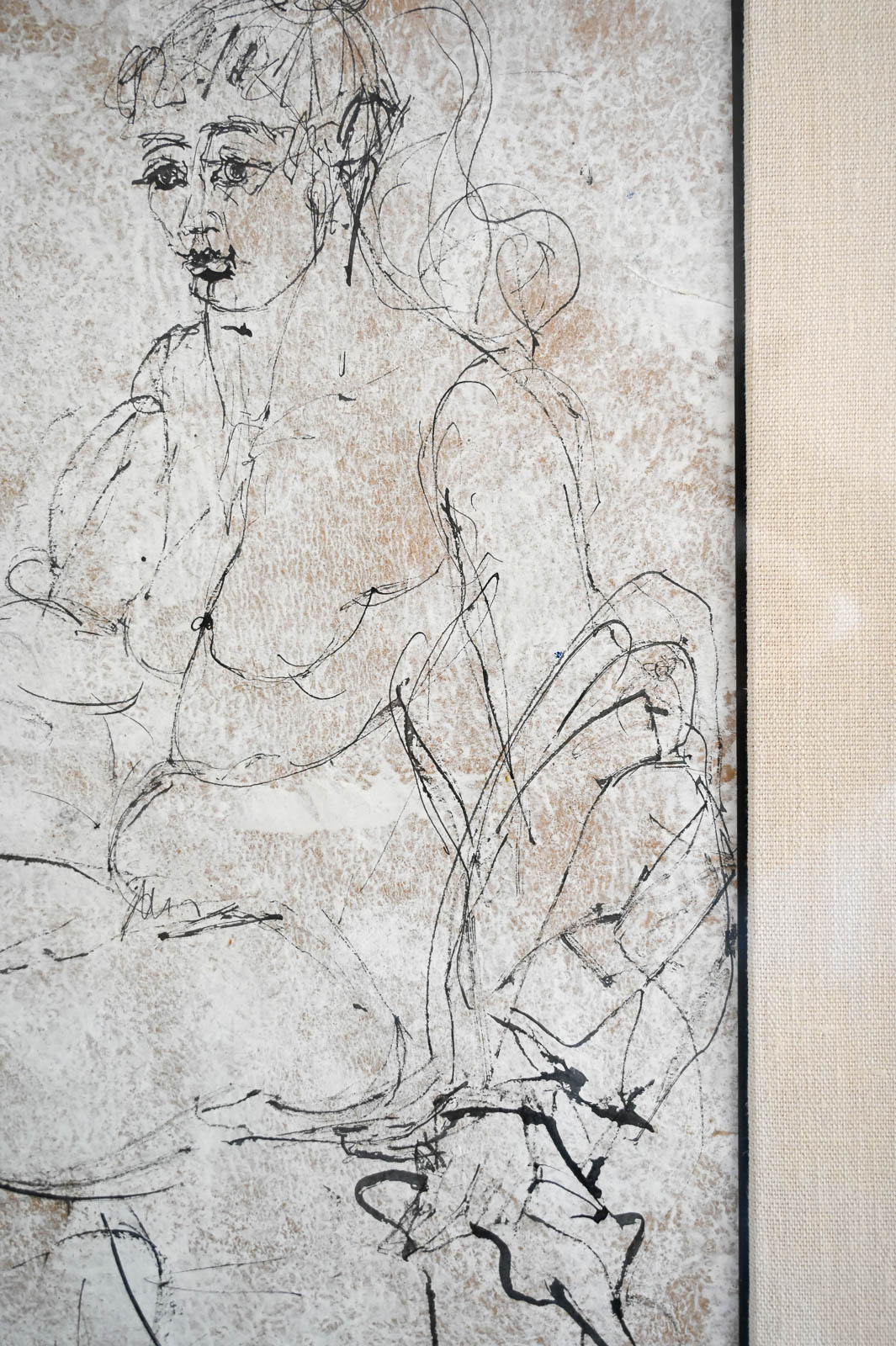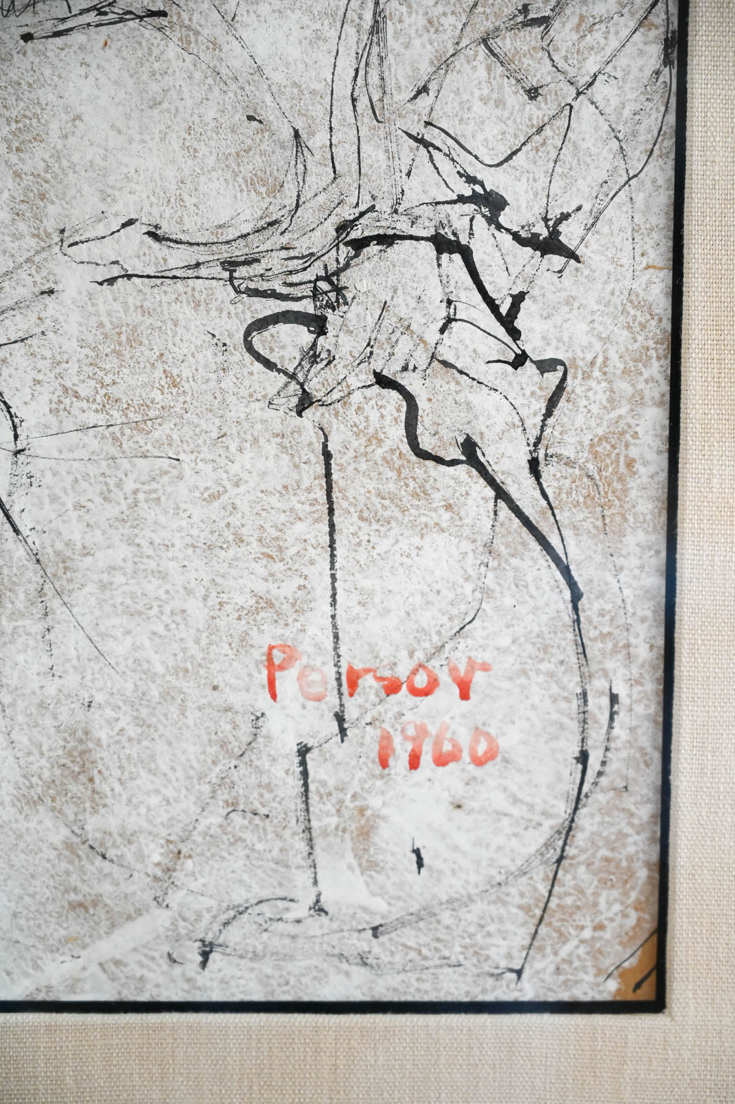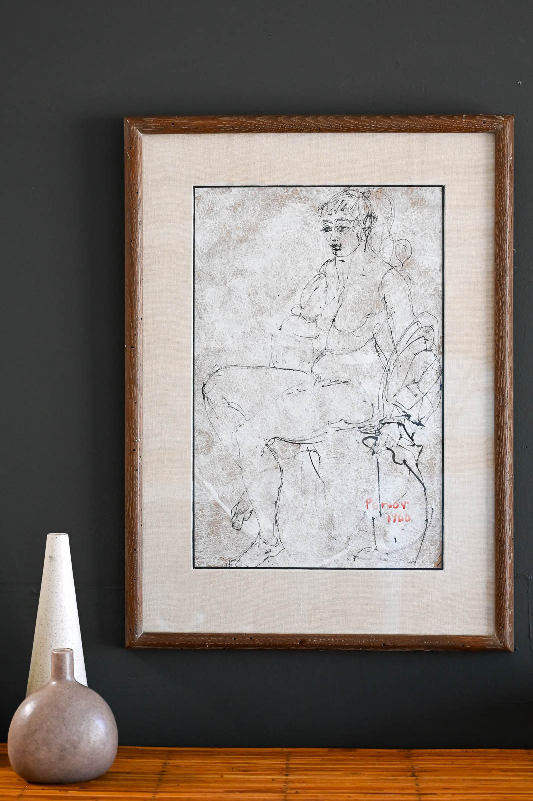 Figurative Etching by Ann Marie Persov, 1960. Framed in original frame and linen mat board, this beautiful figurative aquatint etching is a great size for any intimate space. Ms. Persov was a resident of Orange County, CA. Measures 20″ W x 27″ H. Actual print measures 12.5″ x 19.25″
