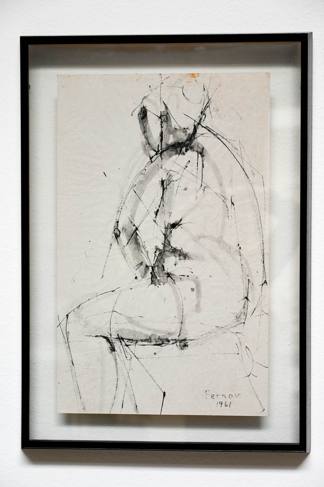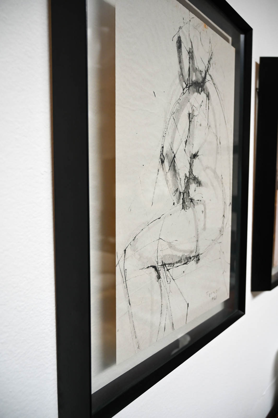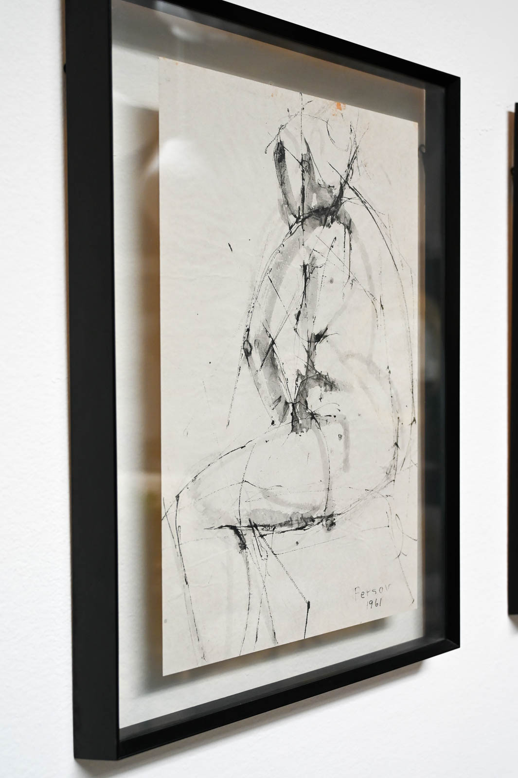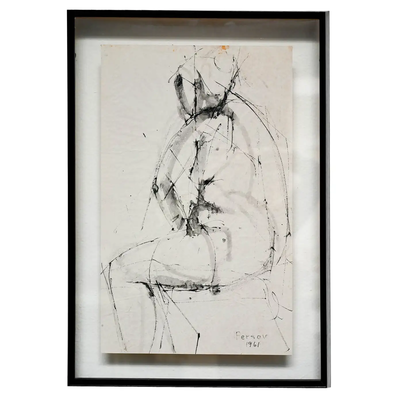 Figurative Etching by Ann Marie Persov, 1961. Framed in original floating glass frame, this beautiful figurative aquatint etching is a great size for any intimate space. Ms. Persov was a resident of Orange County, CA. Measures 17″ W x 24.5″ H. Actual print measures 12.5″ x 20″