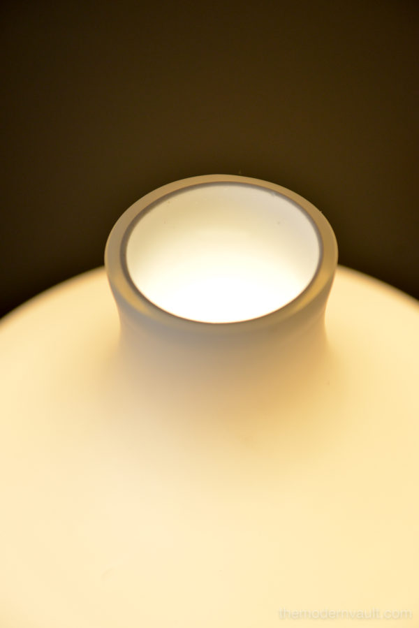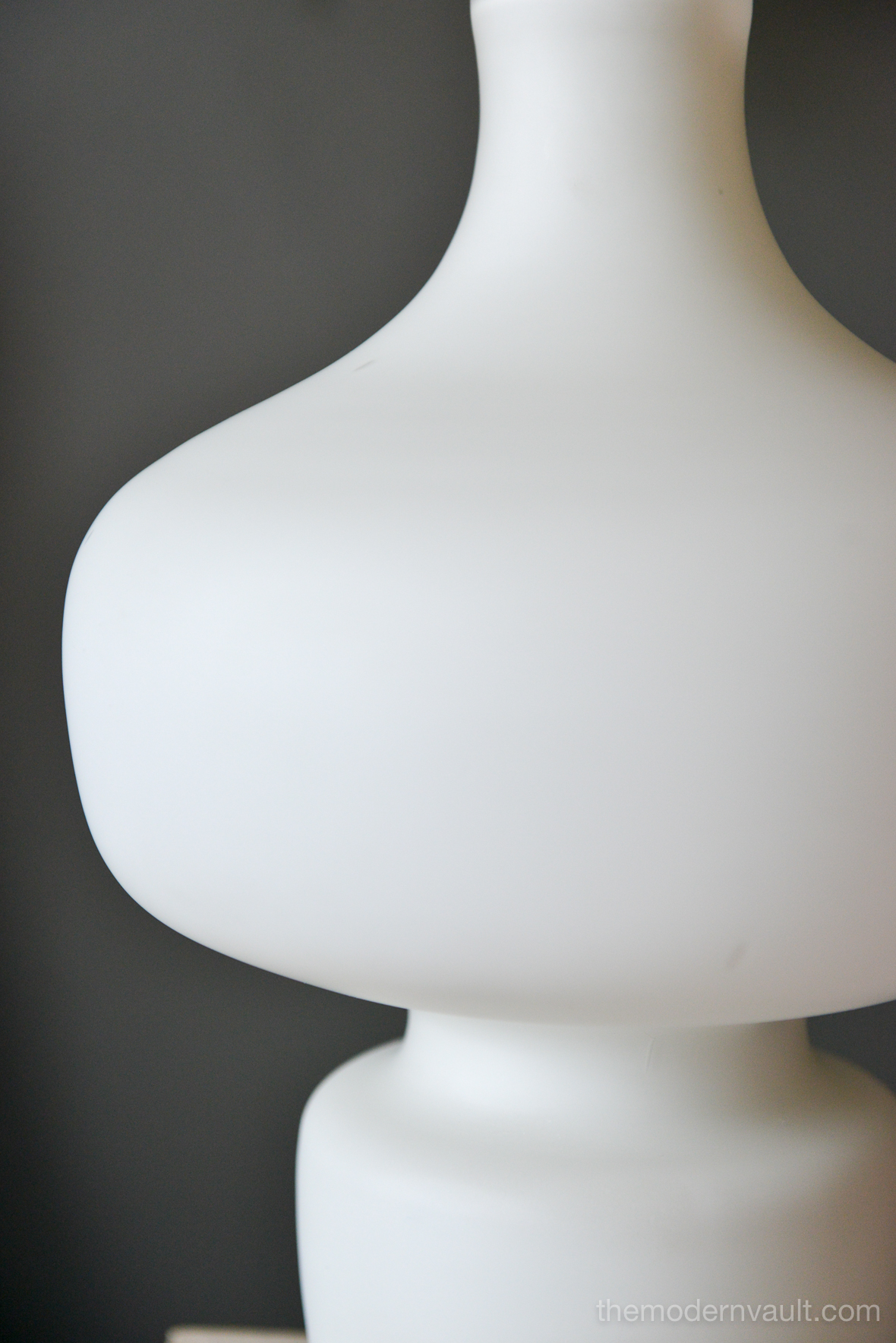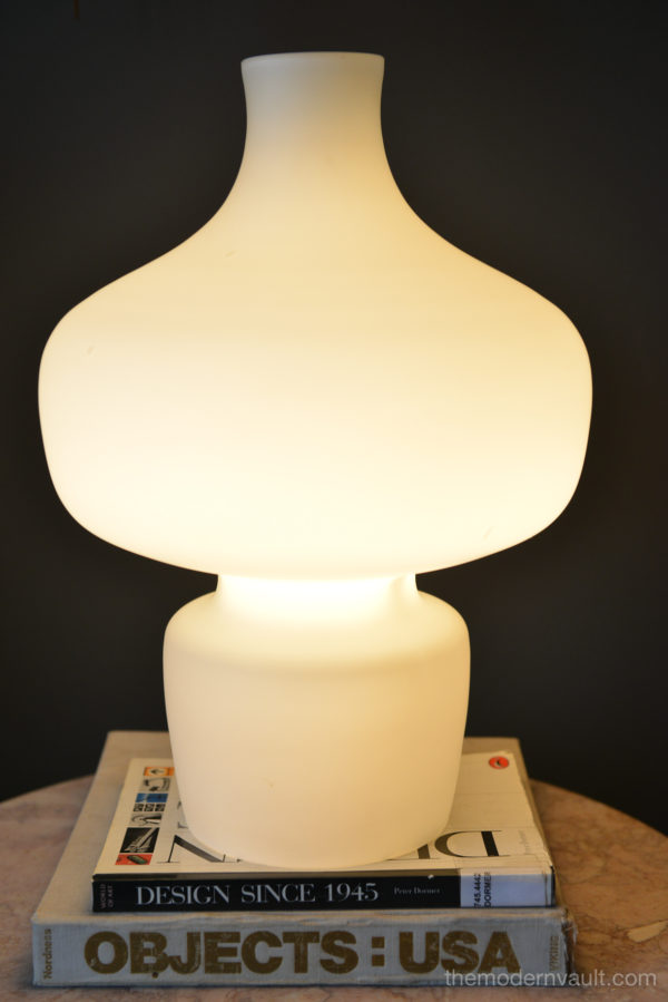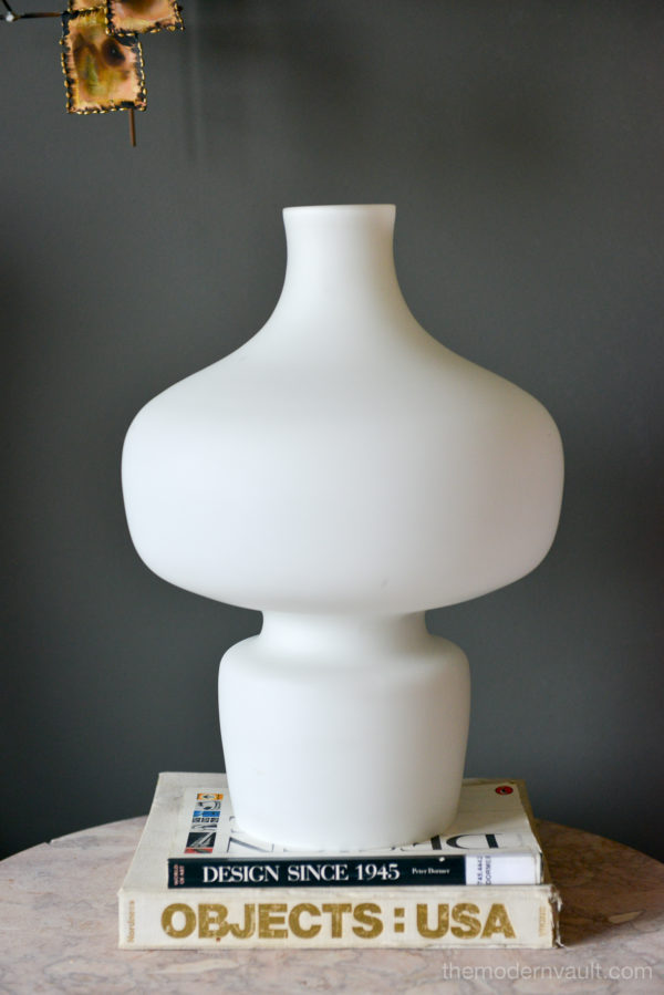 Opaline Blown Glass Lamp by Uno Westerberg for Böhlmarks, Sweden, ca. 1965. Beautiful opaque hand blown glass in perfect vintage condition, rare shape, this style hardly ever comes available for sale. Original cord and wiring. Measures 15″ High x 10″ Diameter at widest.