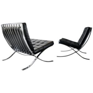 Ludwig Mies van der Rohe’s Barcelona chair and stool (1929), originally created to furnish his German Pavilion at the International Exhibition in Barcelona, have come to epitomize modern design. Mies van der Rohe designed the chair to serve as seating for the King and Queen of Spain, while the stool was intended to accommodate their attendants.