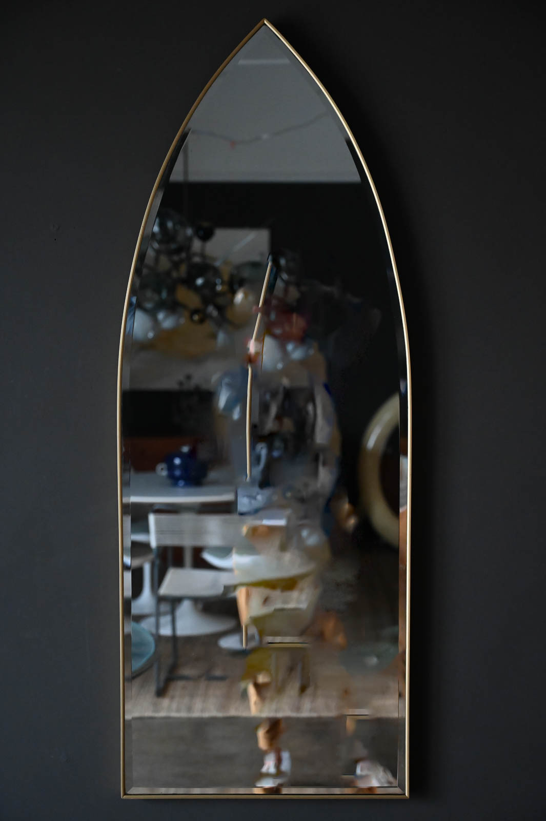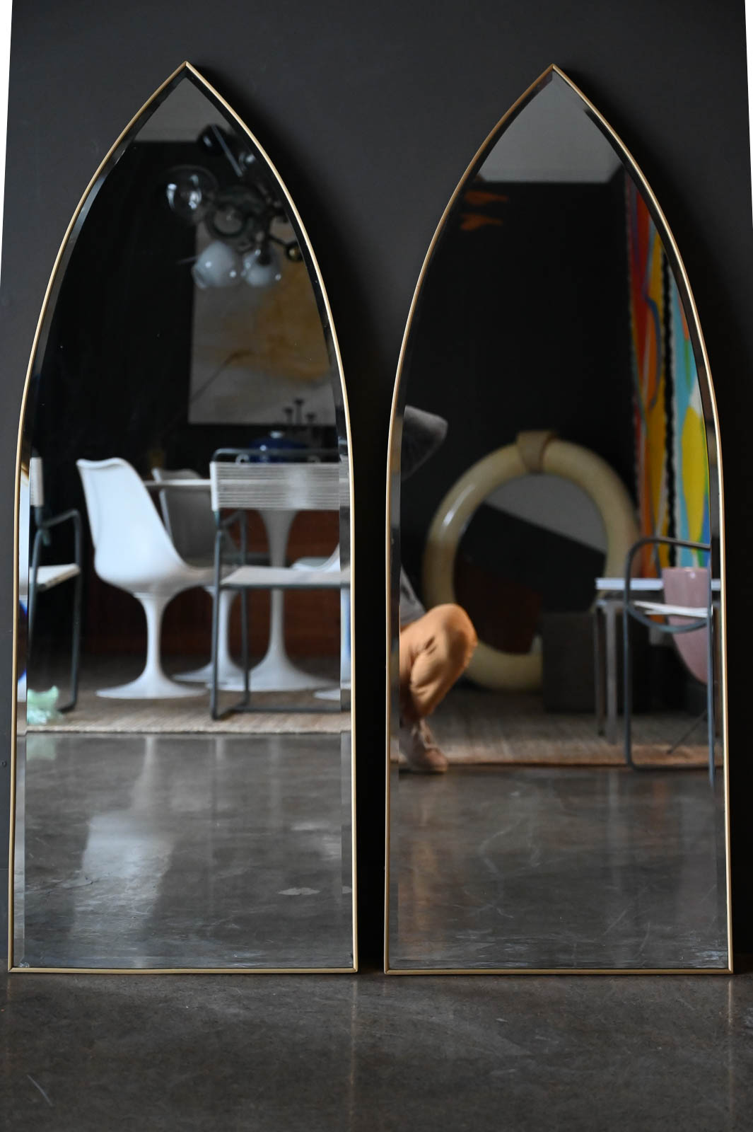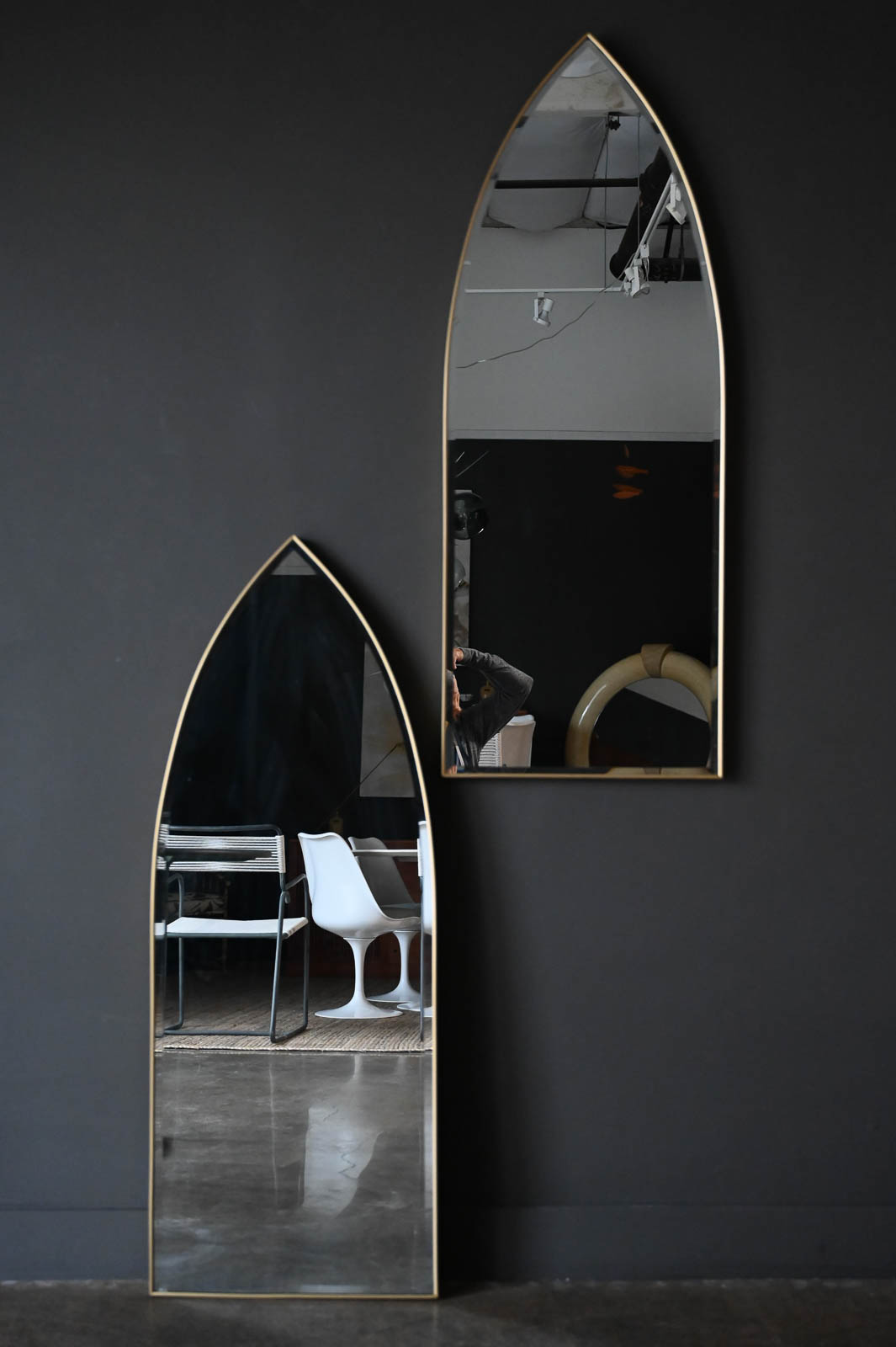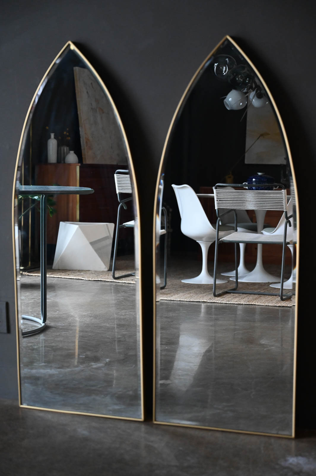 Pair of Vintage Brass Cathedral Mirrors, ca. 1960