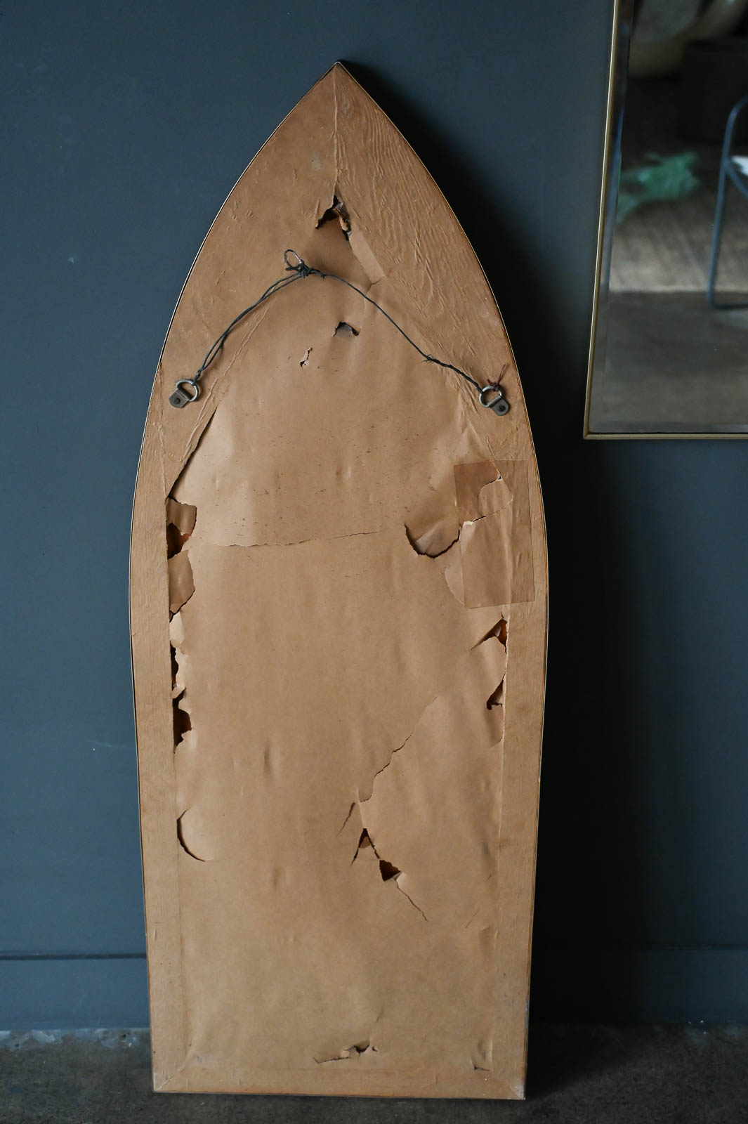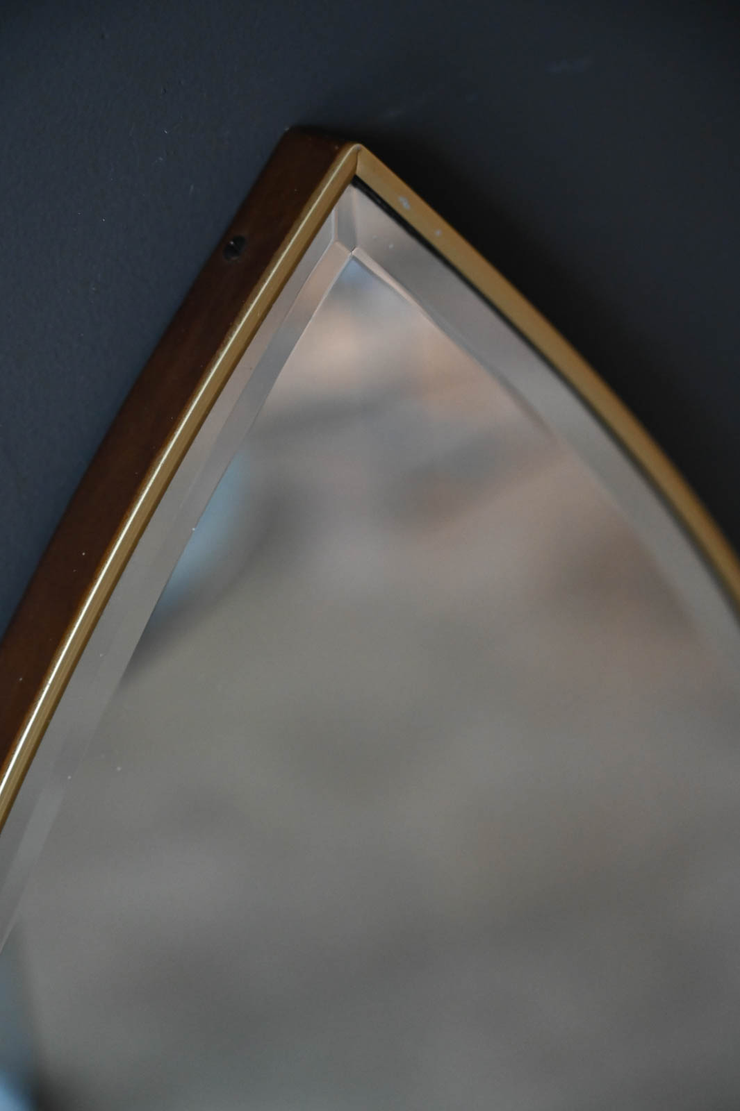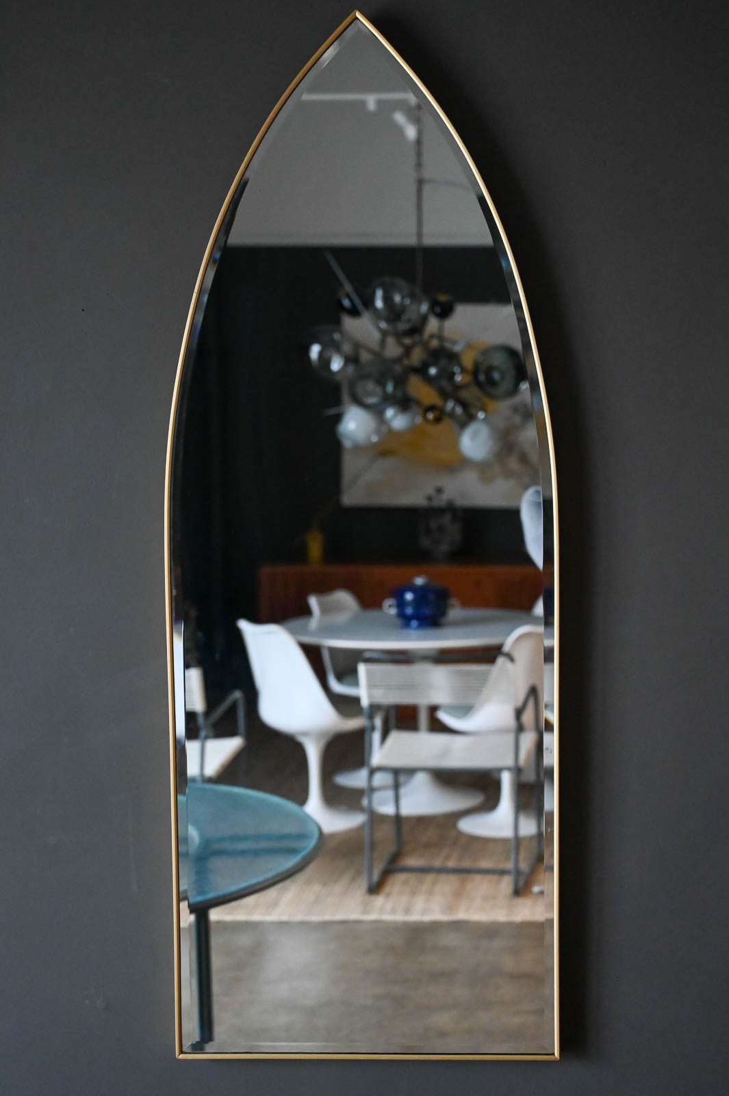 Pair of Vintage Brass Cathedral Mirrors, ca. 1960. Beautiful pair of brass framed cathedral mirrors in very good original condition. The beveled glass is beautiful and very high quality. Brass frame is free of rust or separation. Gorgeous for almost any decor.