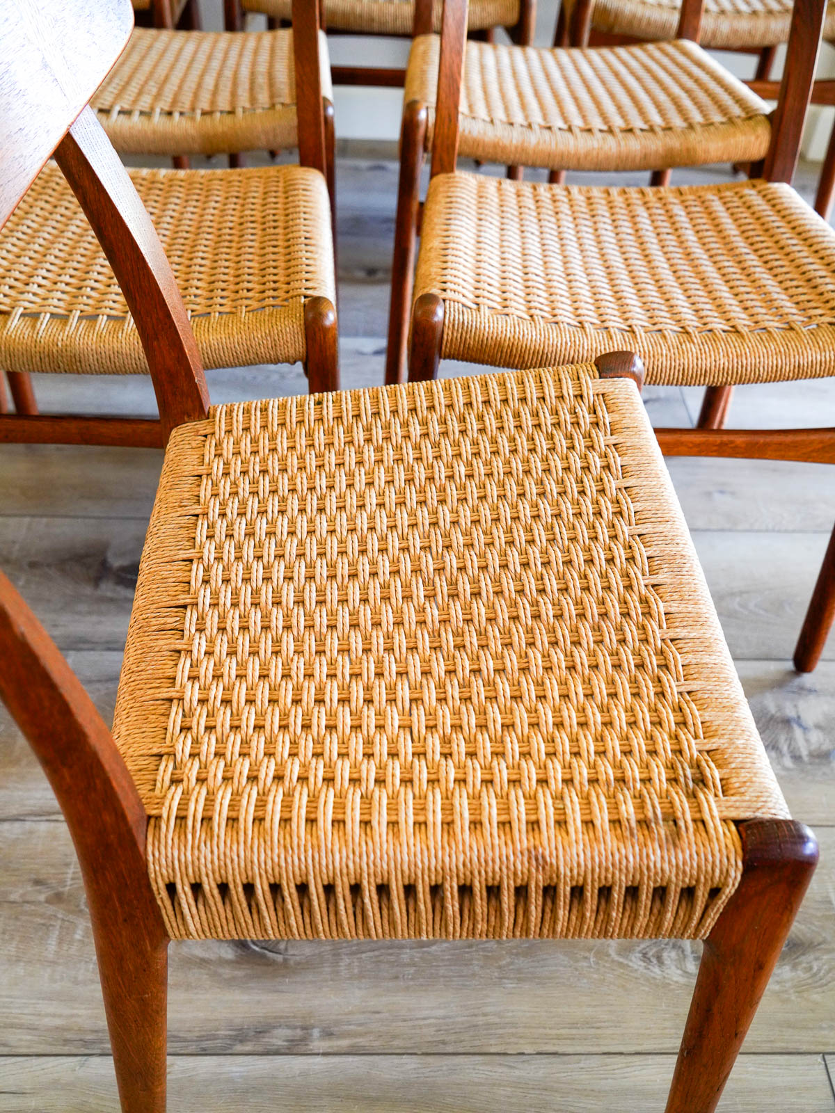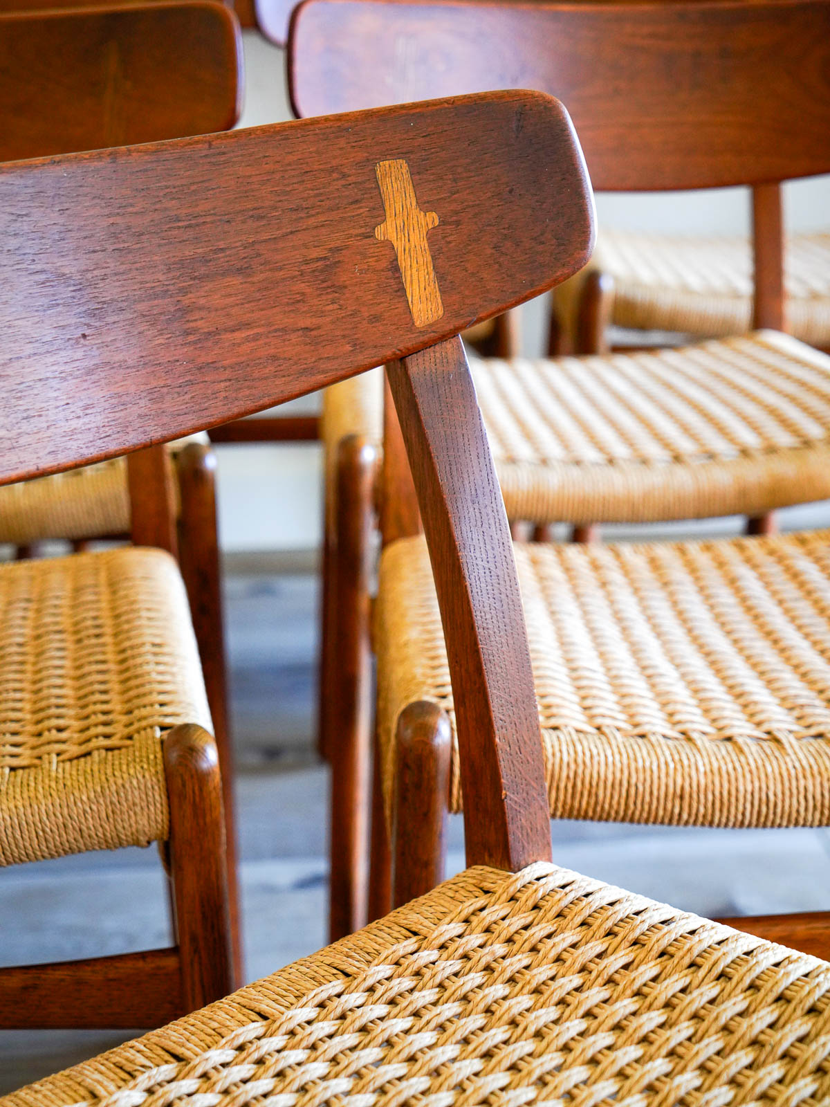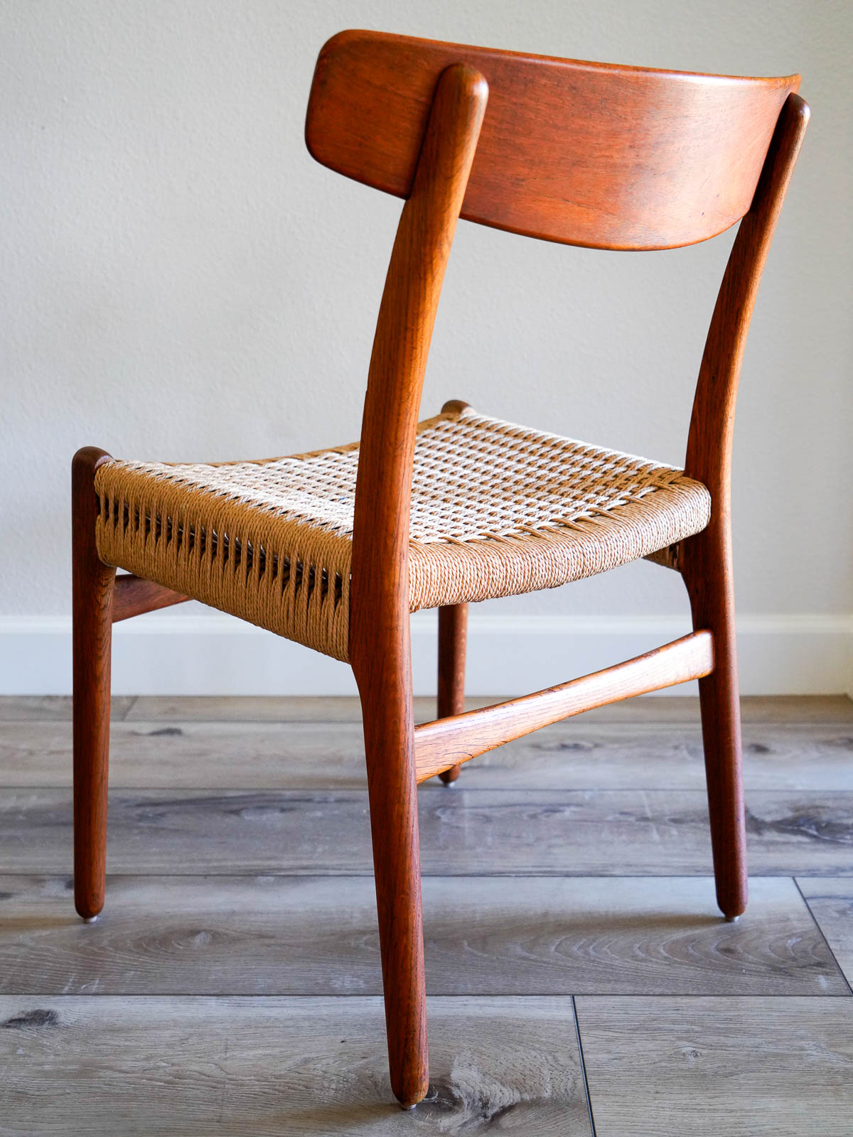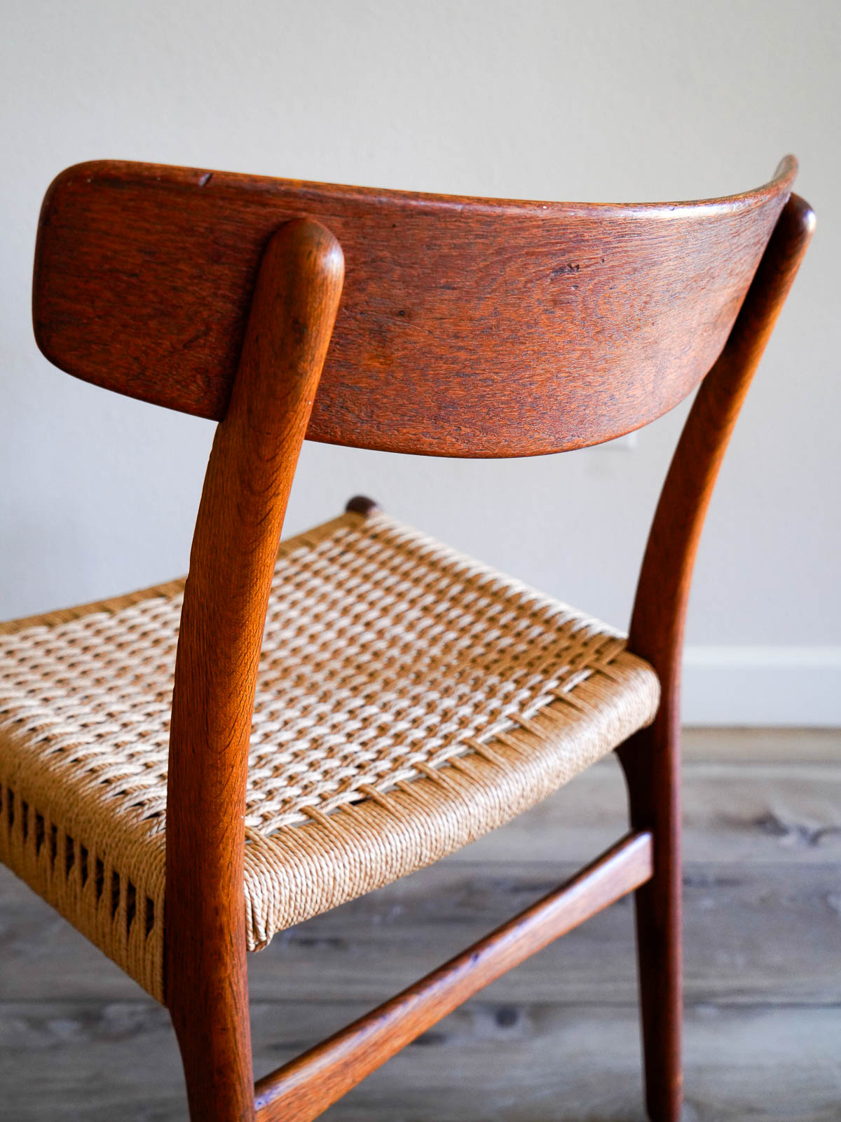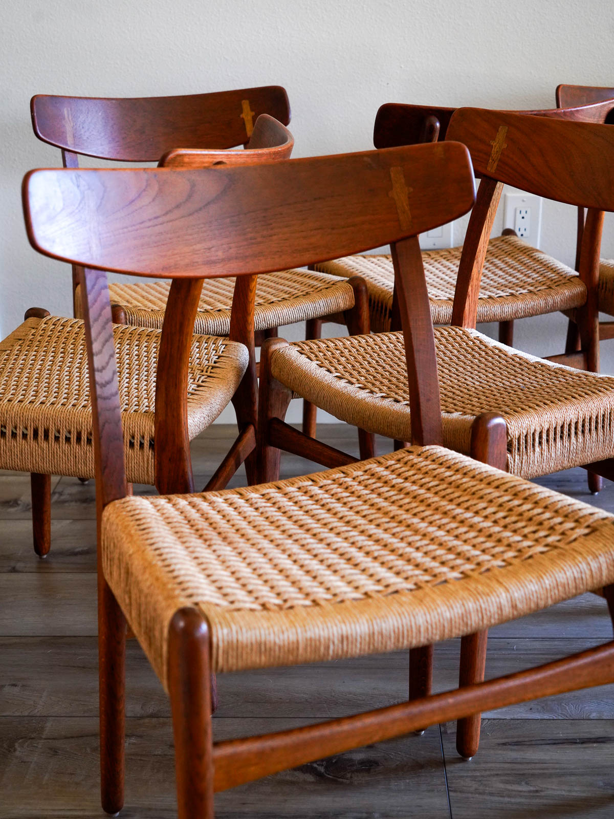 Sourced from the original owner in Southern California who had them imported from Denmark in the early 60’s. Chairs are stamped on underside with Carl Hansen and Hans Wegner marks.