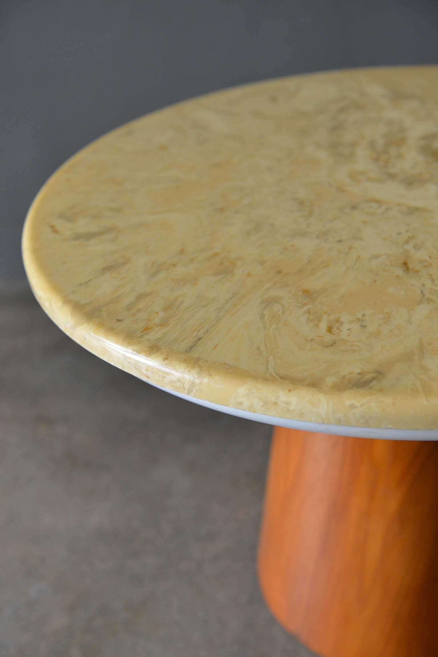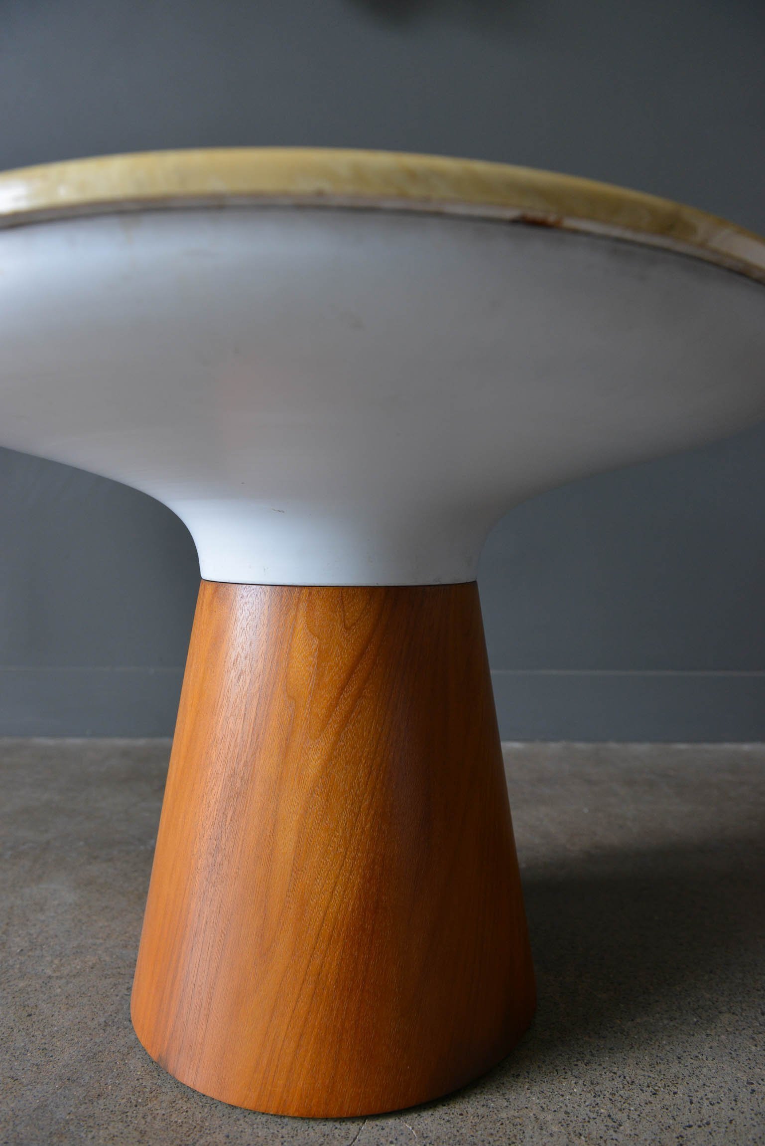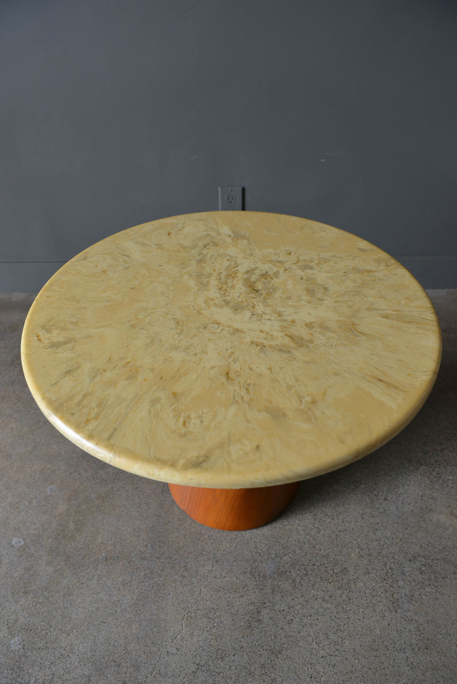 Stone occasional table by Frank Rohloff for Brown Saltman, circa 1965. Walnut base with removable stone top in good condition with only slight wear. Small chip on the underside of the table, not visible from top. Measures 25″ diameter x 18″ height.